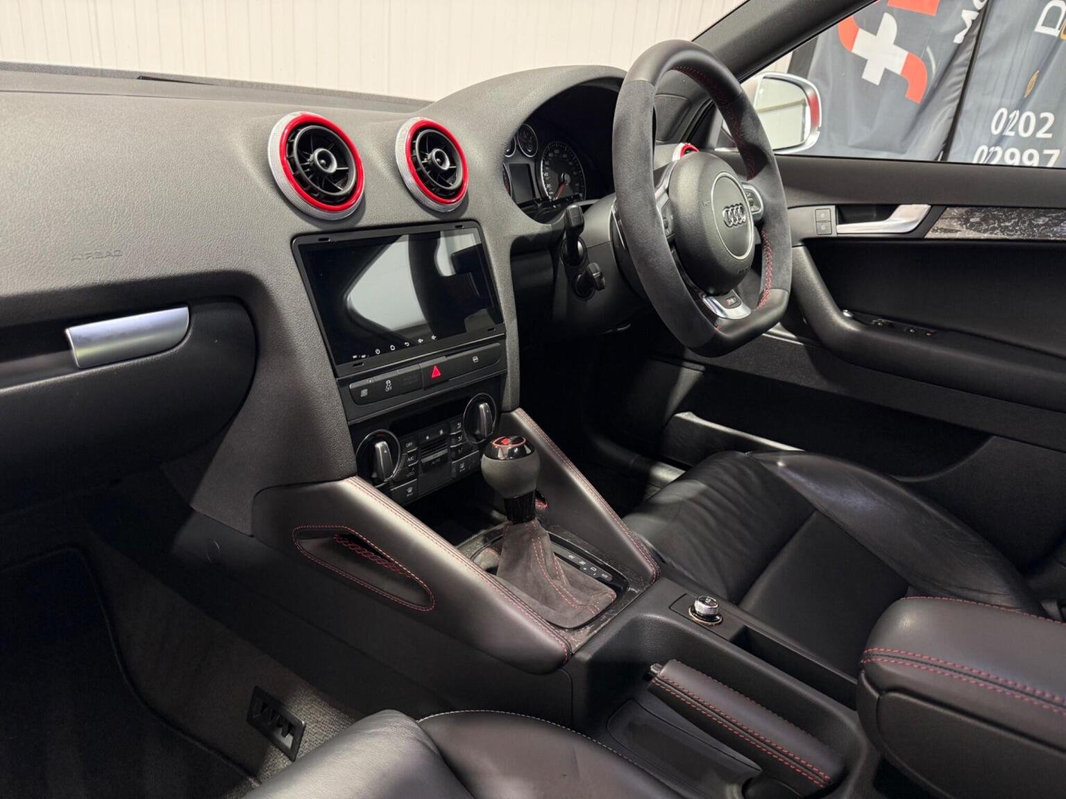 19in Alloy Wheels - 5-Arm Rotor Design Titanium Finish, ABS - Anti-Lock Braking System, AMI - Audi Music Interface, ASR - Anti Slip Regulation, Acoustic Parking System - Rear, Airbags - Driver, Airbags - Front Passenger, Airbags - Front Side System, Airbags - Sideguard, Alarm - Thatcham Category 1, Cloth Headlining in Black, DIS - Drivers Information System - Monochrome, Door Mirrors - Electrically Adjustable and Heated, Dual-Zone Electronic Climate Control, EBD - Electronic Brakeforce Distribution, ESP - Electronic Stability Programme, Electric Windows - Front and Rear, First Aid Kit, Front Centre Armrest, Front Sports Seats, Head Restraints - Audi Backguard Adjustable, Headlights - Bi-Xenon Plus, Headlights Washers, Heated Front Seats, ISOFIX child seat preparation Front and Rear with passenger airbag deactivation switch, Illuminated Vanity Mirrors, Inlays - Piano Finish - Black, Manual Front Seat Adjustment, Mobile Telephone Preparation - Bluetooth Interface, Power Steering - Servotronic Speed-Dependent, RS Sports Suspension, Remote Central Locking, Satellite Navigation System - DVD-based, Split Folding Rear Seat - 1/3 2/3 or All, Steering Wheel - 3-Spoke Perforated Leather/MultiFunction/Flat Bottomed/Shift Paddles, Steering Wheel - Height and Reach Adjustable, Steering Wheel - Multi-function, Sun Blinds - Manual for Side Window