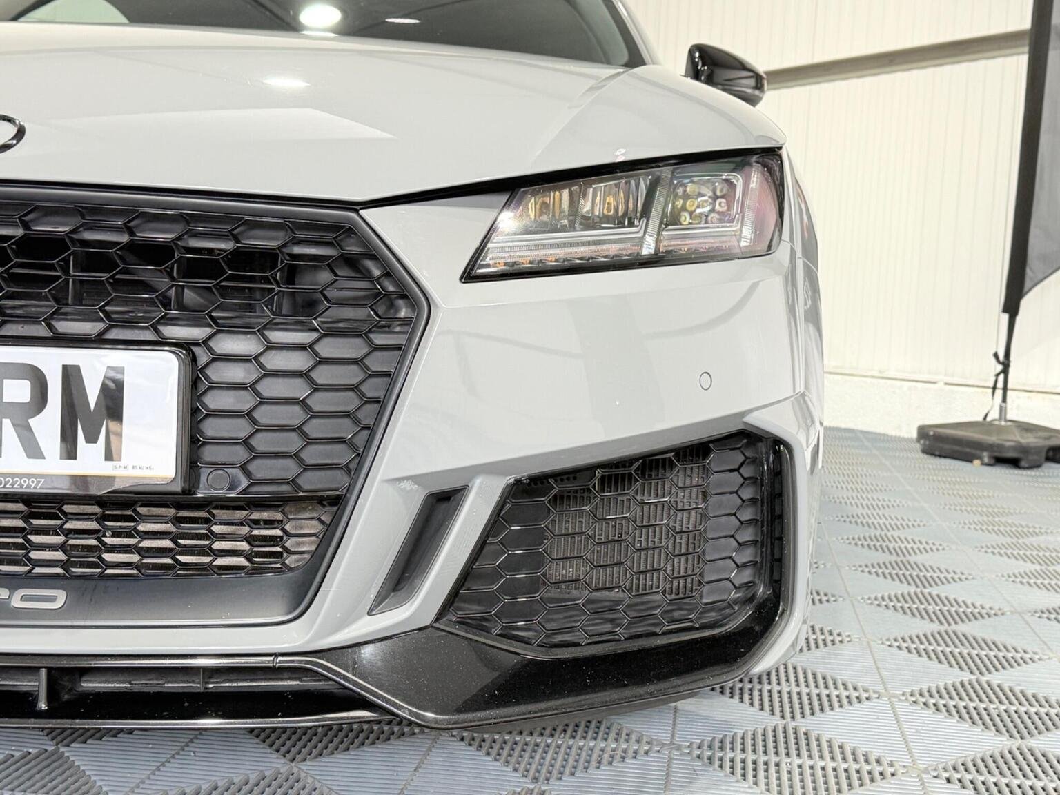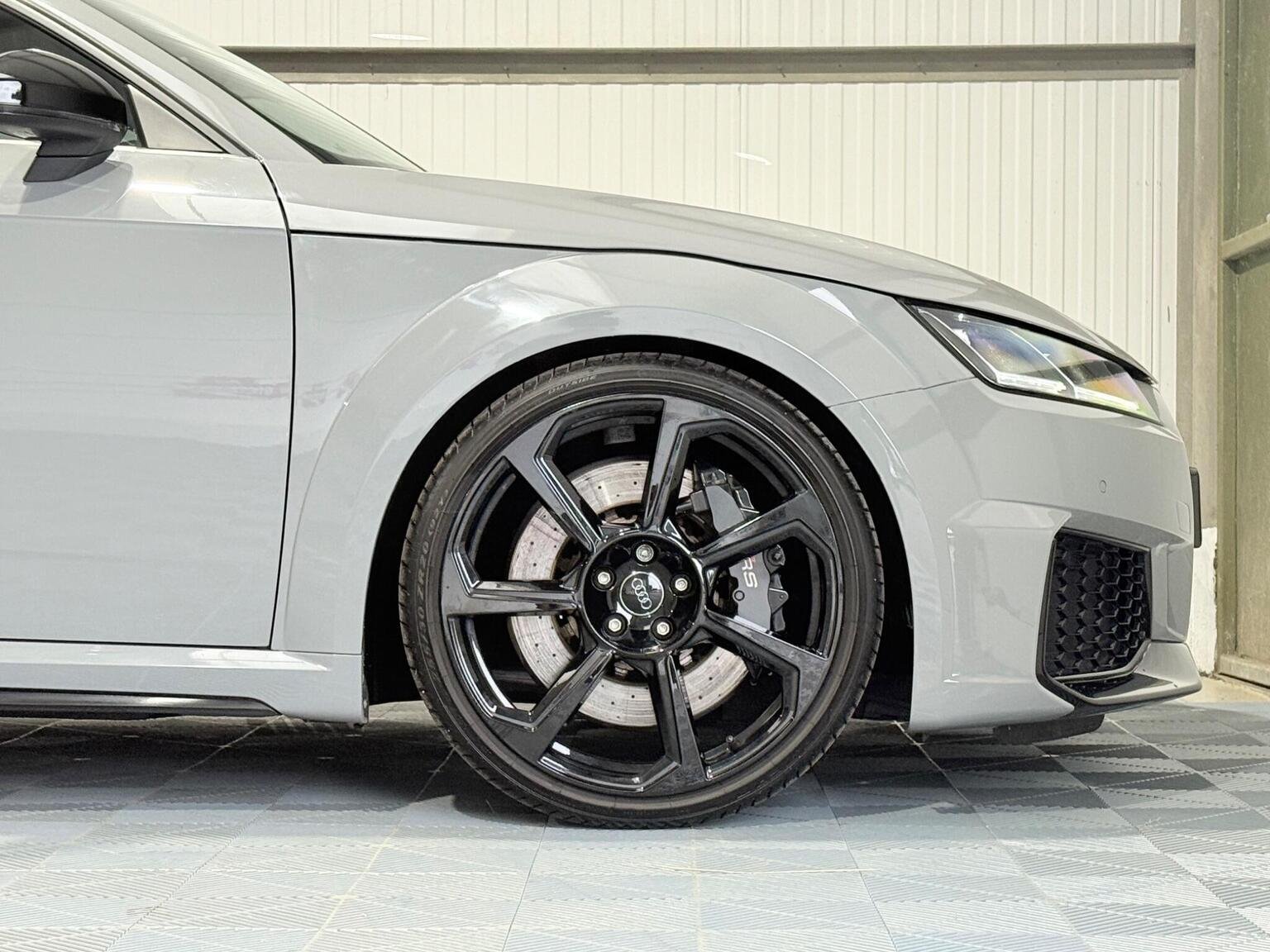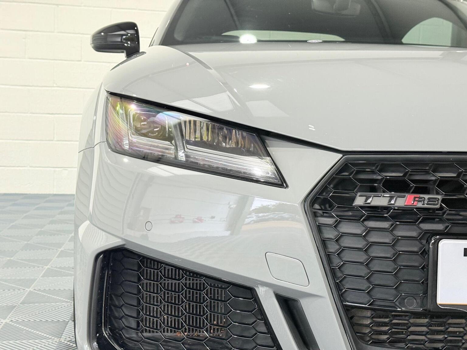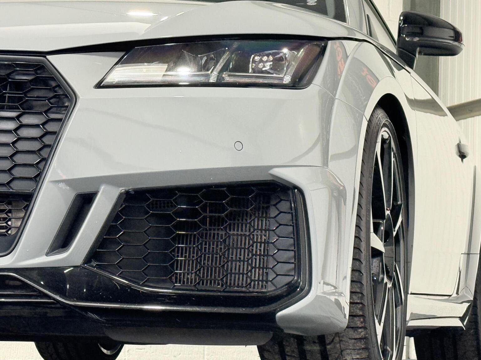 20in Alloy Wheels - 7-Spoke Design Audi Sport in Glossy Anthracite - Diamond Cut Finish, 4-Way Electric Lumbar Support for Front Seats, ABS - Anti-Lock Braking System, AMI - Audi Music Interface, Anti Theft Locking Wheel Bolts, Anti-Theft Alarm, Audi Active Lane Assist, Audi Connect Infotainment Services - 36 Month Trial, Audi Drive Select, Audi Parking System Plus, Audi Sound System, Audi Virtual Cockpit, Audi Virtual Cockpit with Sport Gauge - Power-Torque Display - G-Force Meter, Auto-Dimming Rear-View Mirror, Black Door Mirrors, Black Roof Colour, Black Styling Package, Bluetooth Mobile Telephone Preparation, Brake Calipers - Painted Black with TT RS Logo, Coloured Interior Elements in Slate Grey, Cruise Control, DAB Digital Radio, Deluxe Automatic Air Conditioning, Door Sill Trims with Aluminium Inlays and TTRS Logo, Electric Windows - Front, Electromechanical Parking Brake, Extended Leather Package, Exterior Mirror Housing in Matt Aluminium Look, First Aid Kit, Foot Pedals in Stainless Steel, Front Airbags with Front Passenger Deactivation, Front Centre Armrest, Heated Front Seats, Hill Hold Assist, ISOFIX Child Seat Mounting, ISOFIX Child Seat Mounting for Front Passenger with Airbag Deactivation, Inlays - Carbon, Keyless Go, LED Headlights with LED Rear Lights and Dynamic Rear Indicators, LED Interior Light Package, Light and Rain Sensor, MMI Navigation Plus including MMI Touch, Privacy Glass, Progressive Steering, RS Body Styling, RS Brake System, RS Gear Lever Knob - Alcantara, RS Sports Exhaust System, RS Sports Suspension, Seats - Super Sports, Split-Folding Rear Seats, TT RS 3-Spoke Leather and Alcantara Flat-Bottomed Multi-Function Steering Wheel, TT RS Fixed Rear Wing, TTRS Badge on the Steering Wheel, TTRS Exhaust Sound Button in Centre Console, Technology Package, Tyre Repair Kit