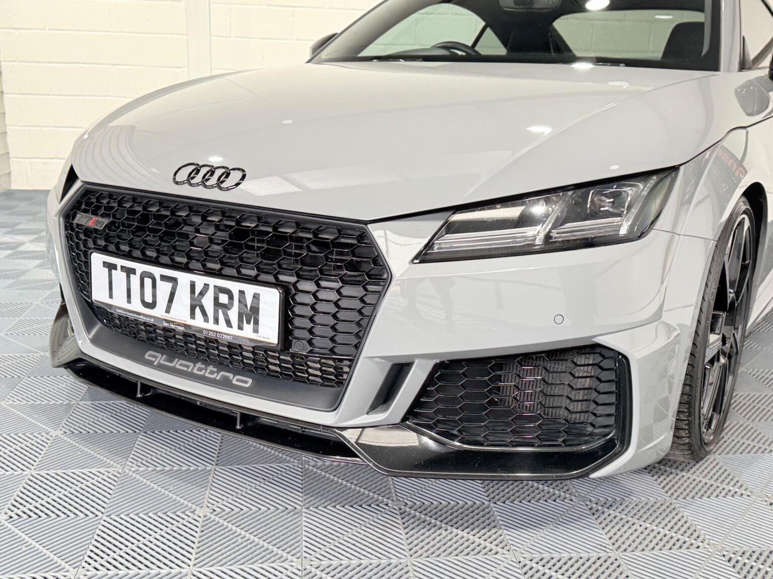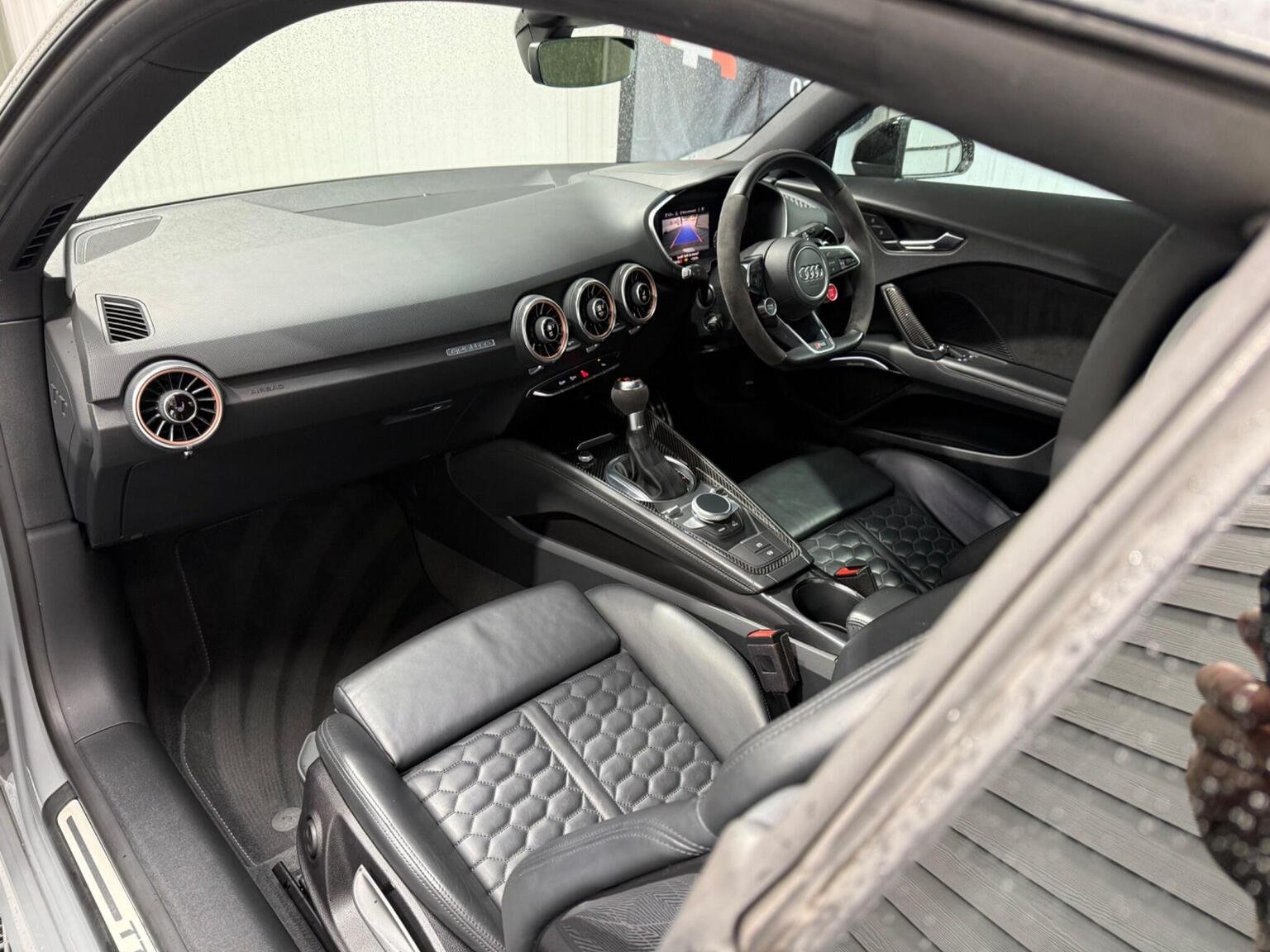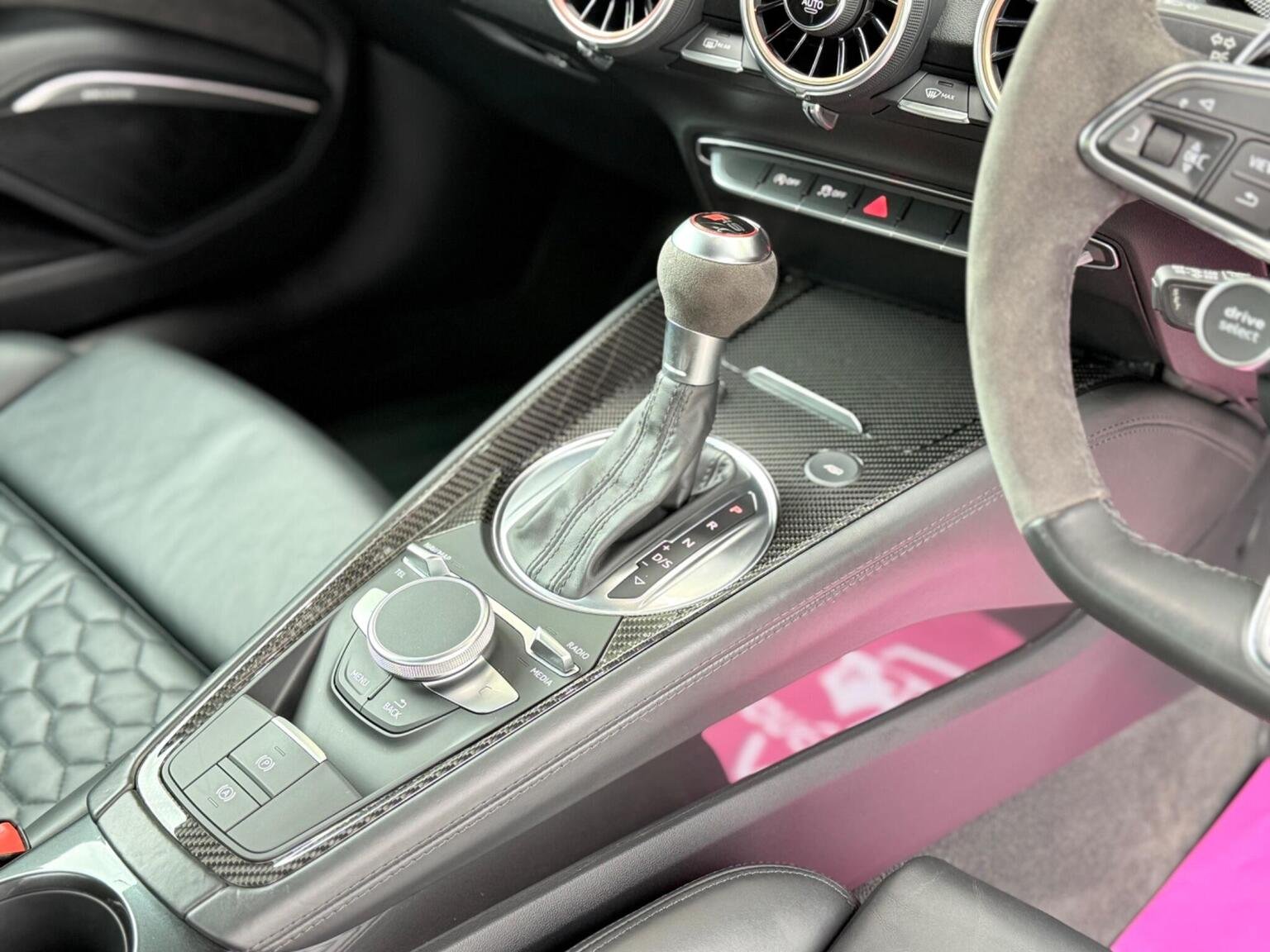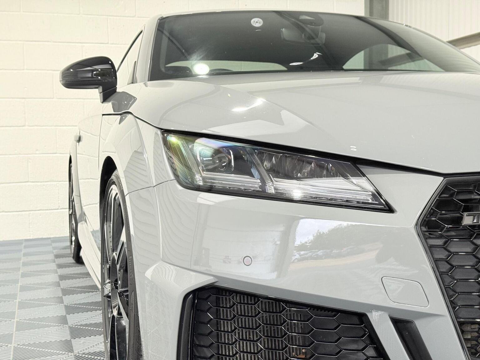 20in Alloy Wheels - 7-Spoke Design Audi Sport in Glossy Anthracite - Diamond Cut Finish, 4-Way Electric Lumbar Support for Front Seats, ABS - Anti-Lock Braking System, AMI - Audi Music Interface, Anti Theft Locking Wheel Bolts, Anti-Theft Alarm, Audi Active Lane Assist, Audi Connect Infotainment Services - 36 Month Trial, Audi Drive Select, Audi Parking System Plus, Audi Sound System, Audi Virtual Cockpit, Audi Virtual Cockpit with Sport Gauge - Power-Torque Display - G-Force Meter, Auto-Dimming Rear-View Mirror, Black Door Mirrors, Black Roof Colour, Black Styling Package, Bluetooth Mobile Telephone Preparation, Brake Calipers - Painted Black with TT RS Logo, Coloured Interior Elements in Slate Grey, Cruise Control, DAB Digital Radio, Deluxe Automatic Air Conditioning, Door Sill Trims with Aluminium Inlays and TTRS Logo, Electric Windows - Front, Electromechanical Parking Brake, Extended Leather Package, Exterior Mirror Housing in Matt Aluminium Look, First Aid Kit, Foot Pedals in Stainless Steel, Front Airbags with Front Passenger Deactivation, Front Centre Armrest, Heated Front Seats, Hill Hold Assist, ISOFIX Child Seat Mounting, ISOFIX Child Seat Mounting for Front Passenger with Airbag Deactivation, Inlays - Carbon, Keyless Go, LED Headlights with LED Rear Lights and Dynamic Rear Indicators, LED Interior Light Package, Light and Rain Sensor, MMI Navigation Plus including MMI Touch, Privacy Glass, Progressive Steering, RS Body Styling, RS Brake System, RS Gear Lever Knob - Alcantara, RS Sports Exhaust System, RS Sports Suspension, Seats - Super Sports, Split-Folding Rear Seats, TT RS 3-Spoke Leather and Alcantara Flat-Bottomed Multi-Function Steering Wheel, TT RS Fixed Rear Wing, TTRS Badge on the Steering Wheel, TTRS Exhaust Sound Button in Centre Console, Technology Package, Tyre Repair Kit