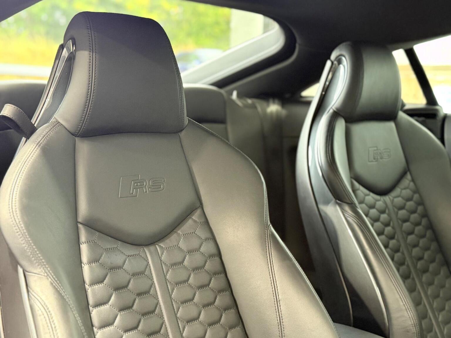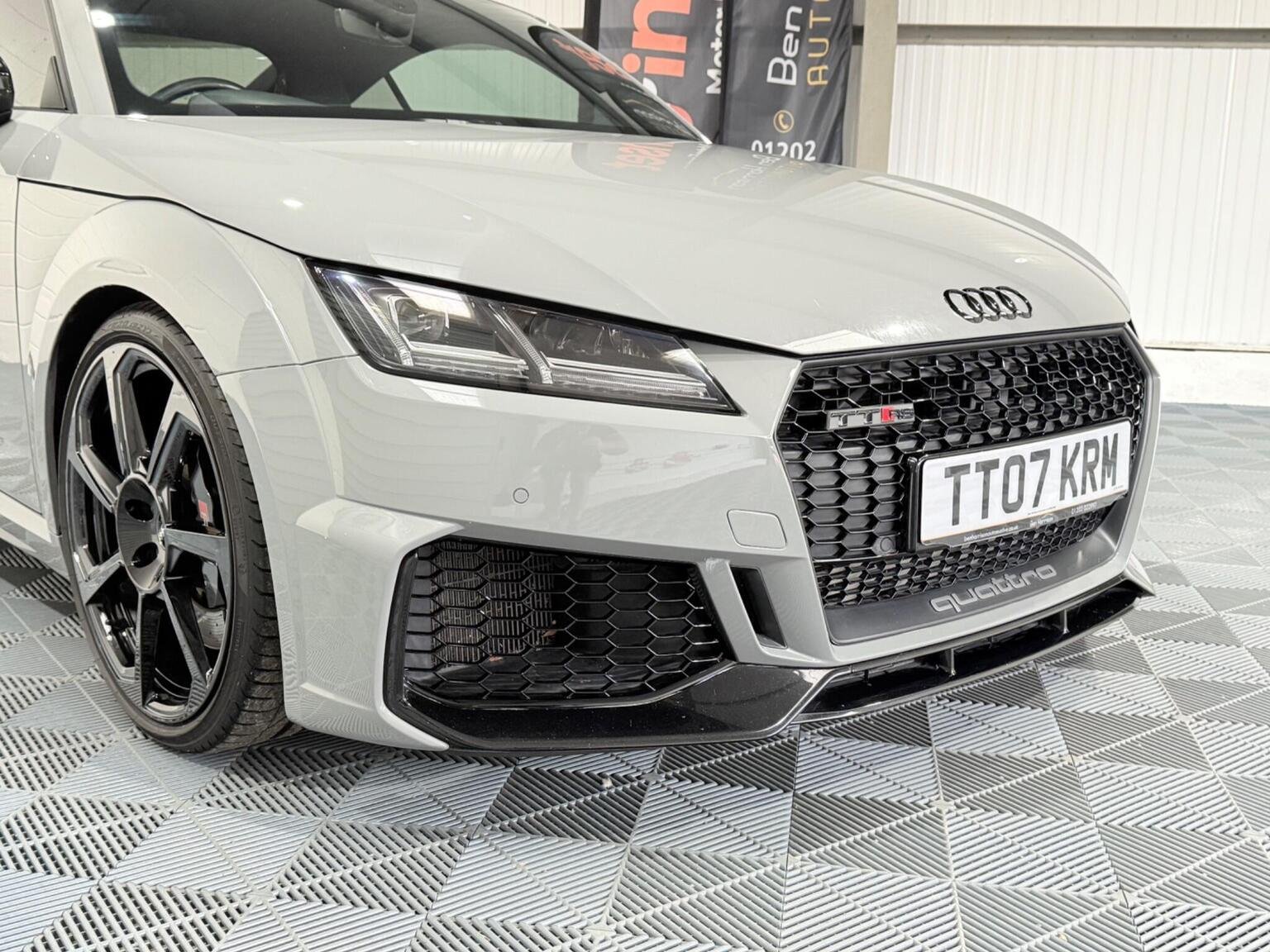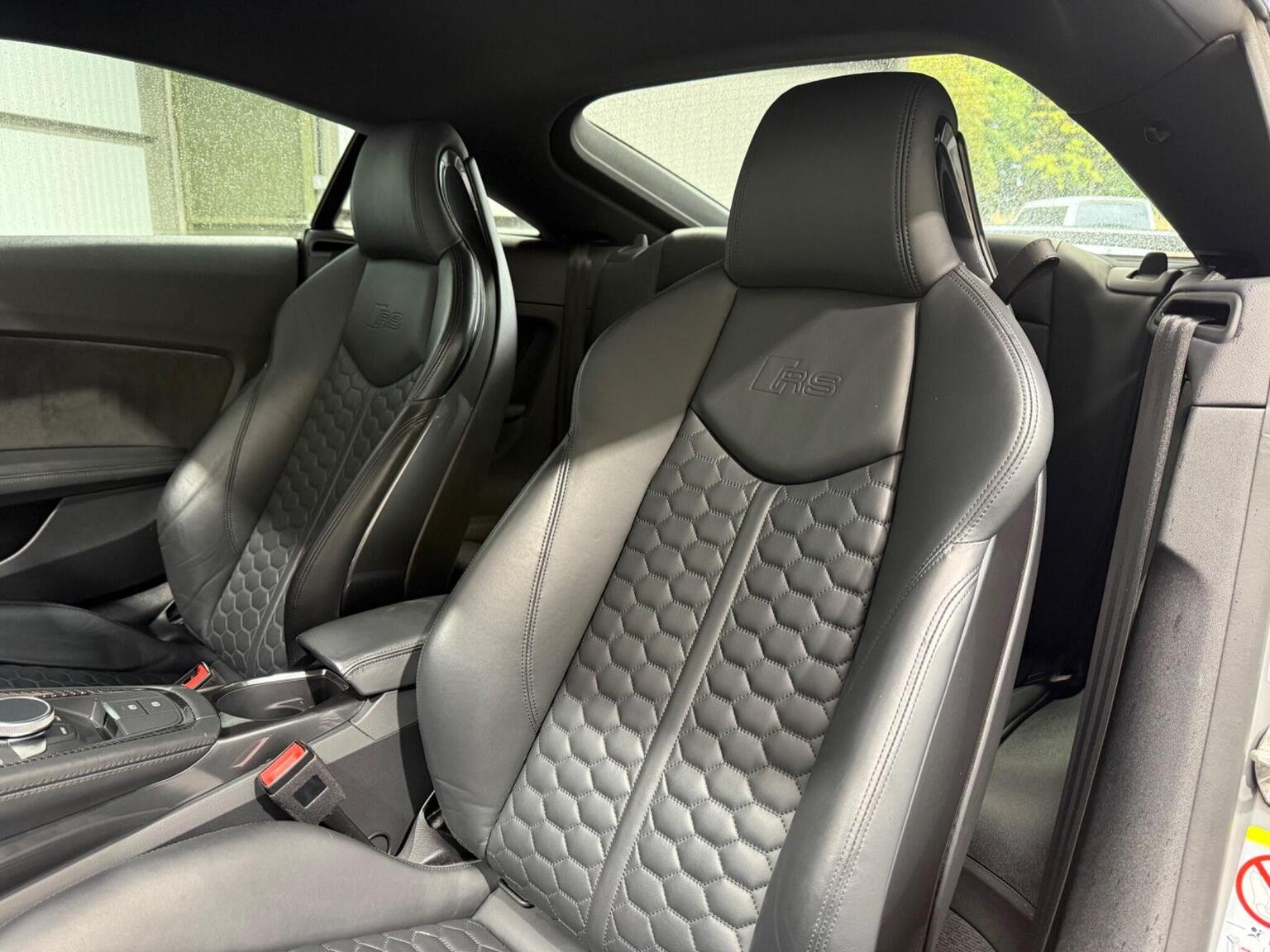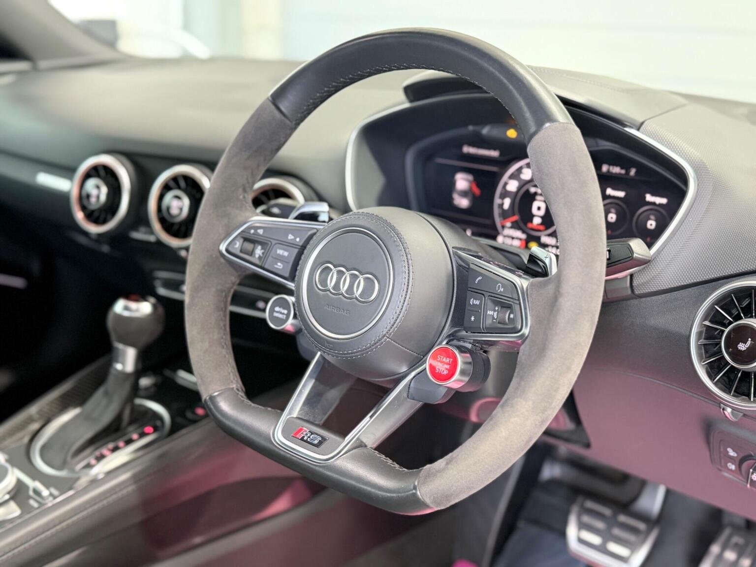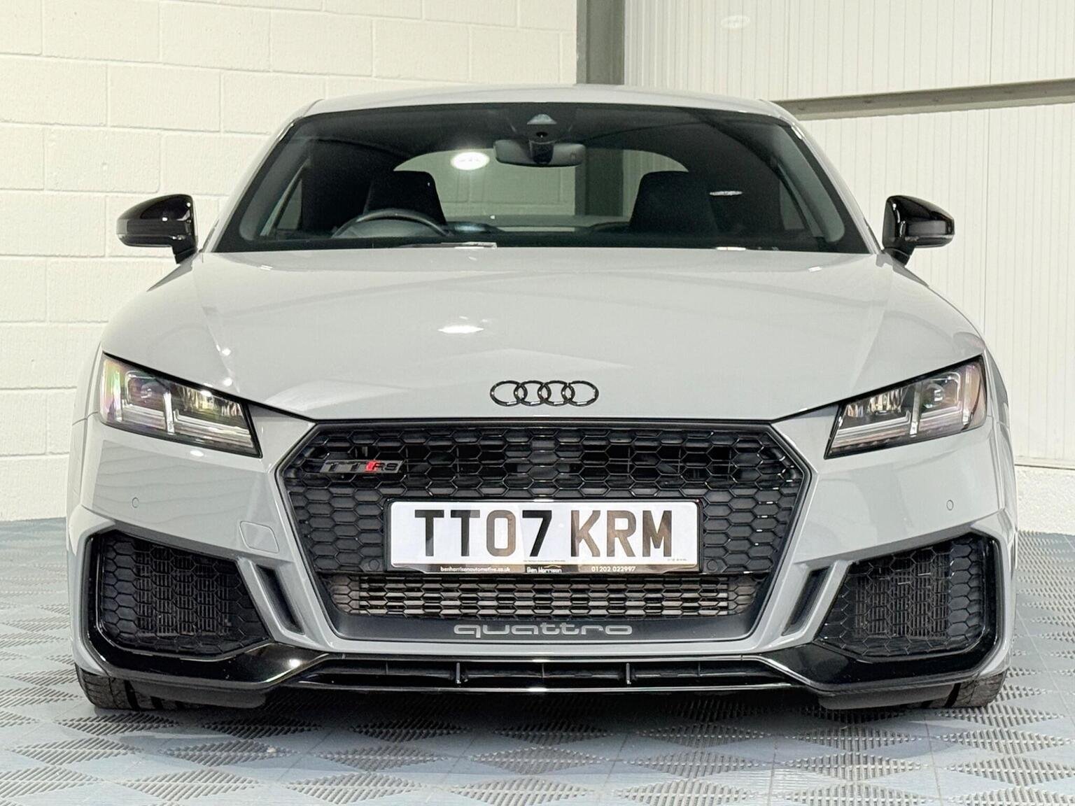 20in Alloy Wheels - 7-Spoke Design Audi Sport in Glossy Anthracite - Diamond Cut Finish, 4-Way Electric Lumbar Support for Front Seats, ABS - Anti-Lock Braking System, AMI - Audi Music Interface, Anti Theft Locking Wheel Bolts, Anti-Theft Alarm, Audi Active Lane Assist, Audi Connect Infotainment Services - 36 Month Trial, Audi Drive Select, Audi Parking System Plus, Audi Sound System, Audi Virtual Cockpit, Audi Virtual Cockpit with Sport Gauge - Power-Torque Display - G-Force Meter, Auto-Dimming Rear-View Mirror, Black Door Mirrors, Black Roof Colour, Black Styling Package, Bluetooth Mobile Telephone Preparation, Brake Calipers - Painted Black with TT RS Logo, Coloured Interior Elements in Slate Grey, Cruise Control, DAB Digital Radio, Deluxe Automatic Air Conditioning, Door Sill Trims with Aluminium Inlays and TTRS Logo, Electric Windows - Front, Electromechanical Parking Brake, Extended Leather Package, Exterior Mirror Housing in Matt Aluminium Look, First Aid Kit, Foot Pedals in Stainless Steel, Front Airbags with Front Passenger Deactivation, Front Centre Armrest, Heated Front Seats, Hill Hold Assist, ISOFIX Child Seat Mounting, ISOFIX Child Seat Mounting for Front Passenger with Airbag Deactivation, Inlays - Carbon, Keyless Go, LED Headlights with LED Rear Lights and Dynamic Rear Indicators, LED Interior Light Package, Light and Rain Sensor, MMI Navigation Plus including MMI Touch, Privacy Glass, Progressive Steering, RS Body Styling, RS Brake System, RS Gear Lever Knob - Alcantara, RS Sports Exhaust System, RS Sports Suspension, Seats - Super Sports, Split-Folding Rear Seats, TT RS 3-Spoke Leather and Alcantara Flat-Bottomed Multi-Function Steering Wheel, TT RS Fixed Rear Wing, TTRS Badge on the Steering Wheel, TTRS Exhaust Sound Button in Centre Console, Technology Package, Tyre Repair Kit