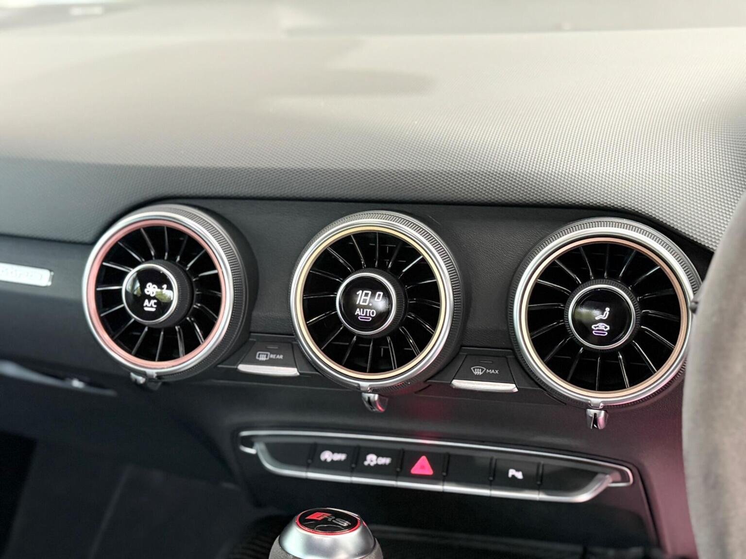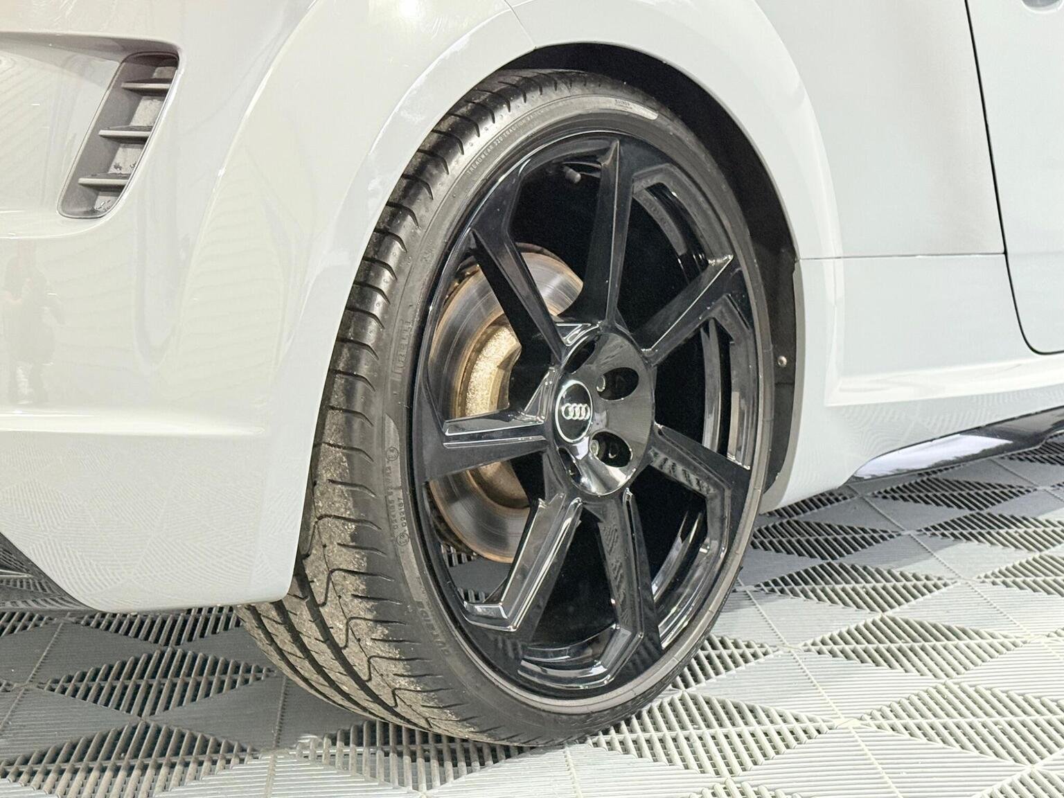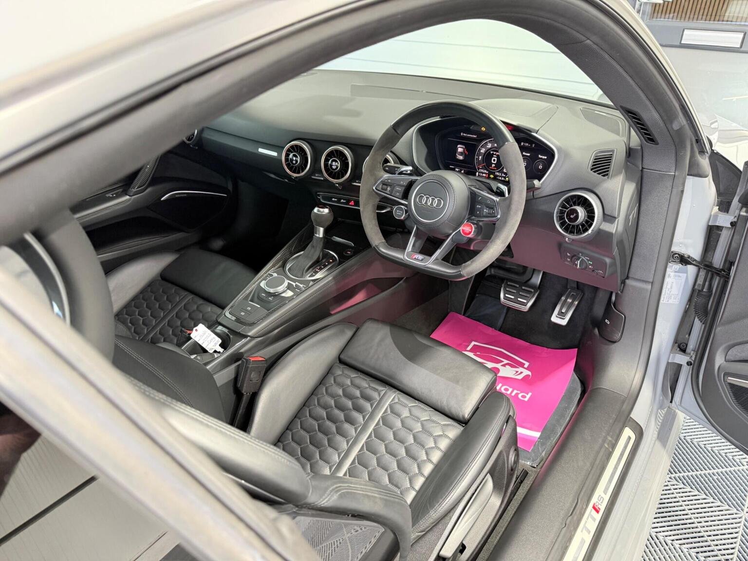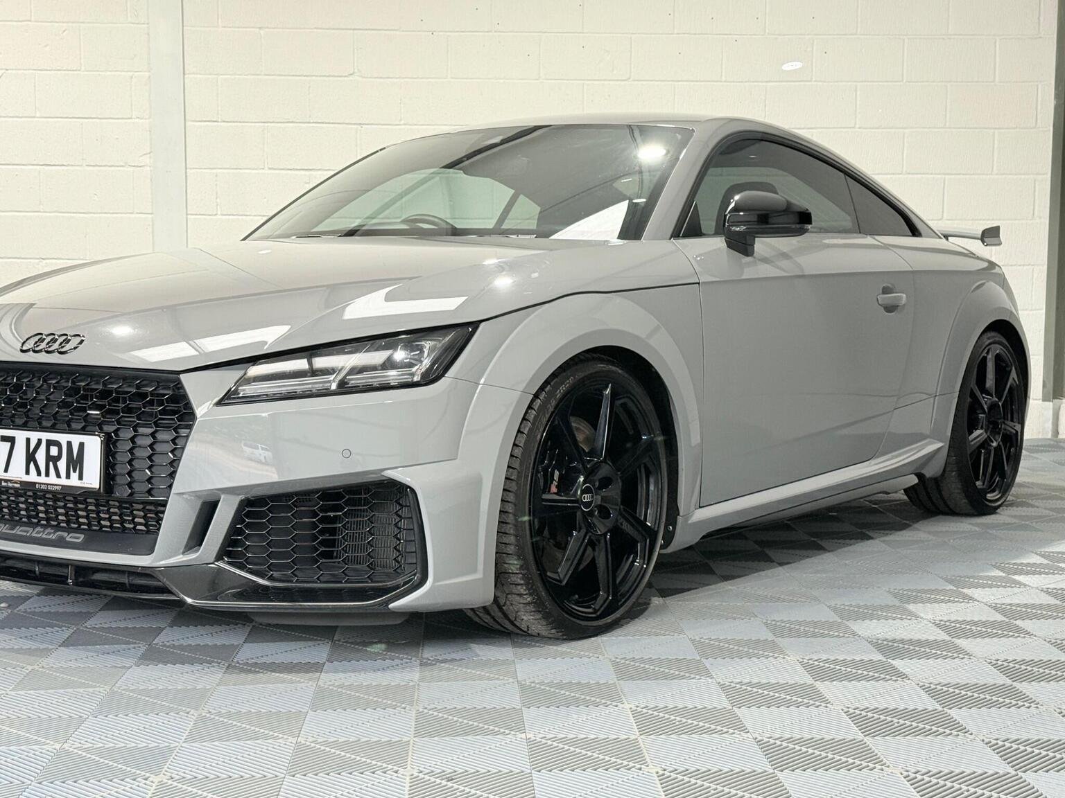 20in Alloy Wheels - 7-Spoke Design Audi Sport in Glossy Anthracite - Diamond Cut Finish, 4-Way Electric Lumbar Support for Front Seats, ABS - Anti-Lock Braking System, AMI - Audi Music Interface, Anti Theft Locking Wheel Bolts, Anti-Theft Alarm, Audi Active Lane Assist, Audi Connect Infotainment Services - 36 Month Trial, Audi Drive Select, Audi Parking System Plus, Audi Sound System, Audi Virtual Cockpit, Audi Virtual Cockpit with Sport Gauge - Power-Torque Display - G-Force Meter, Auto-Dimming Rear-View Mirror, Black Door Mirrors, Black Roof Colour, Black Styling Package, Bluetooth Mobile Telephone Preparation, Brake Calipers - Painted Black with TT RS Logo, Coloured Interior Elements in Slate Grey, Cruise Control, DAB Digital Radio, Deluxe Automatic Air Conditioning, Door Sill Trims with Aluminium Inlays and TTRS Logo, Electric Windows - Front, Electromechanical Parking Brake, Extended Leather Package, Exterior Mirror Housing in Matt Aluminium Look, First Aid Kit, Foot Pedals in Stainless Steel, Front Airbags with Front Passenger Deactivation, Front Centre Armrest, Heated Front Seats, Hill Hold Assist, ISOFIX Child Seat Mounting, ISOFIX Child Seat Mounting for Front Passenger with Airbag Deactivation, Inlays - Carbon, Keyless Go, LED Headlights with LED Rear Lights and Dynamic Rear Indicators, LED Interior Light Package, Light and Rain Sensor, MMI Navigation Plus including MMI Touch, Privacy Glass, Progressive Steering, RS Body Styling, RS Brake System, RS Gear Lever Knob - Alcantara, RS Sports Exhaust System, RS Sports Suspension, Seats - Super Sports, Split-Folding Rear Seats, TT RS 3-Spoke Leather and Alcantara Flat-Bottomed Multi-Function Steering Wheel, TT RS Fixed Rear Wing, TTRS Badge on the Steering Wheel, TTRS Exhaust Sound Button in Centre Console, Technology Package, Tyre Repair Kit