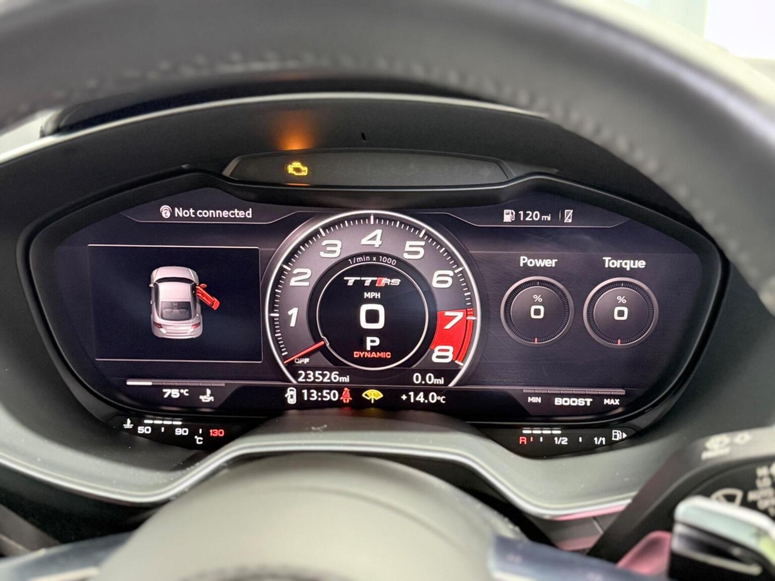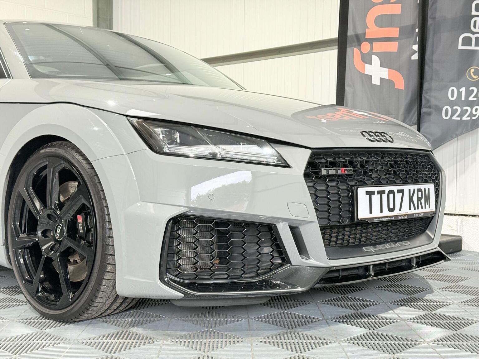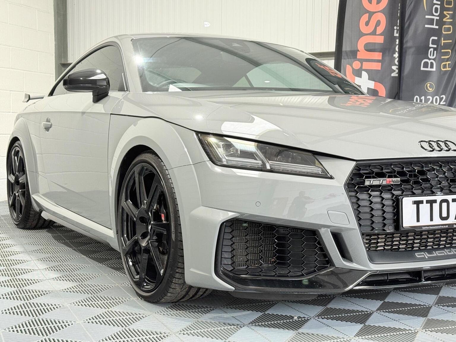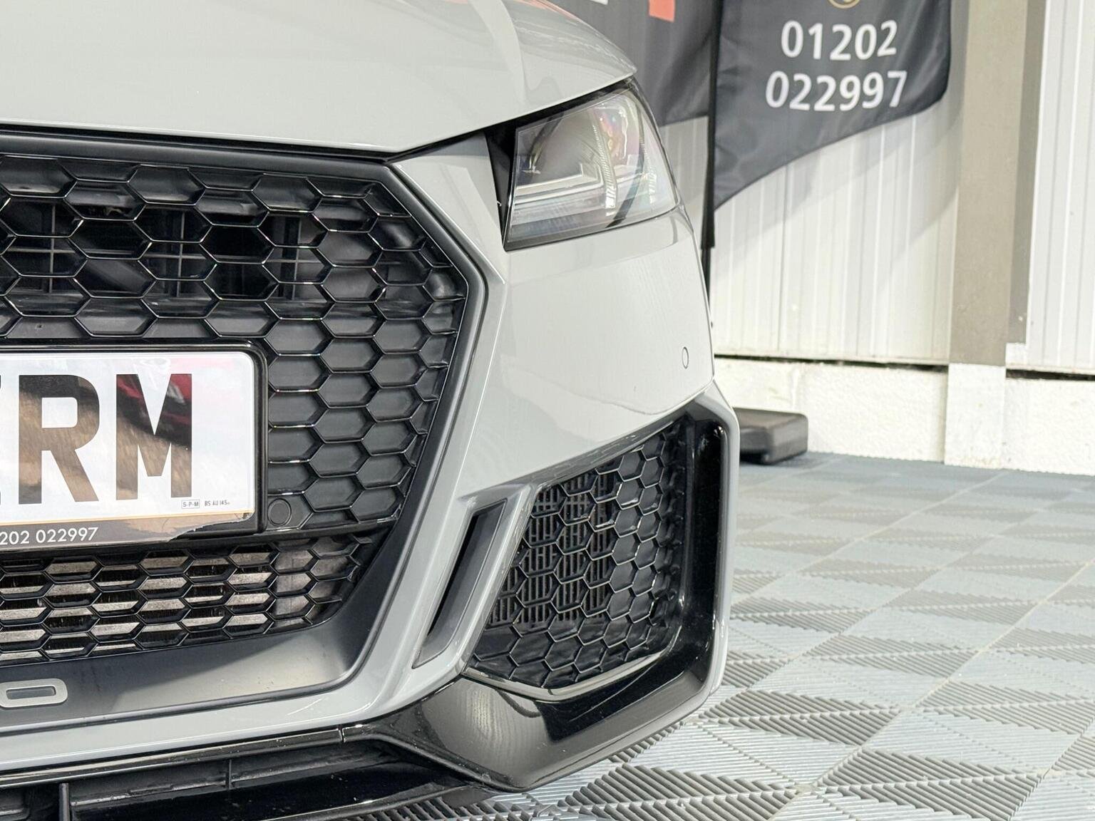 20in Alloy Wheels - 7-Spoke Design Audi Sport in Glossy Anthracite - Diamond Cut Finish, 4-Way Electric Lumbar Support for Front Seats, ABS - Anti-Lock Braking System, AMI - Audi Music Interface, Anti Theft Locking Wheel Bolts, Anti-Theft Alarm, Audi Active Lane Assist, Audi Connect Infotainment Services - 36 Month Trial, Audi Drive Select, Audi Parking System Plus, Audi Sound System, Audi Virtual Cockpit, Audi Virtual Cockpit with Sport Gauge - Power-Torque Display - G-Force Meter, Auto-Dimming Rear-View Mirror, Black Door Mirrors, Black Roof Colour, Black Styling Package, Bluetooth Mobile Telephone Preparation, Brake Calipers - Painted Black with TT RS Logo, Coloured Interior Elements in Slate Grey, Cruise Control, DAB Digital Radio, Deluxe Automatic Air Conditioning, Door Sill Trims with Aluminium Inlays and TTRS Logo, Electric Windows - Front, Electromechanical Parking Brake, Extended Leather Package, Exterior Mirror Housing in Matt Aluminium Look, First Aid Kit, Foot Pedals in Stainless Steel, Front Airbags with Front Passenger Deactivation, Front Centre Armrest, Heated Front Seats, Hill Hold Assist, ISOFIX Child Seat Mounting, ISOFIX Child Seat Mounting for Front Passenger with Airbag Deactivation, Inlays - Carbon, Keyless Go, LED Headlights with LED Rear Lights and Dynamic Rear Indicators, LED Interior Light Package, Light and Rain Sensor, MMI Navigation Plus including MMI Touch, Privacy Glass, Progressive Steering, RS Body Styling, RS Brake System, RS Gear Lever Knob - Alcantara, RS Sports Exhaust System, RS Sports Suspension, Seats - Super Sports, Split-Folding Rear Seats, TT RS 3-Spoke Leather and Alcantara Flat-Bottomed Multi-Function Steering Wheel, TT RS Fixed Rear Wing, TTRS Badge on the Steering Wheel, TTRS Exhaust Sound Button in Centre Console, Technology Package, Tyre Repair Kit