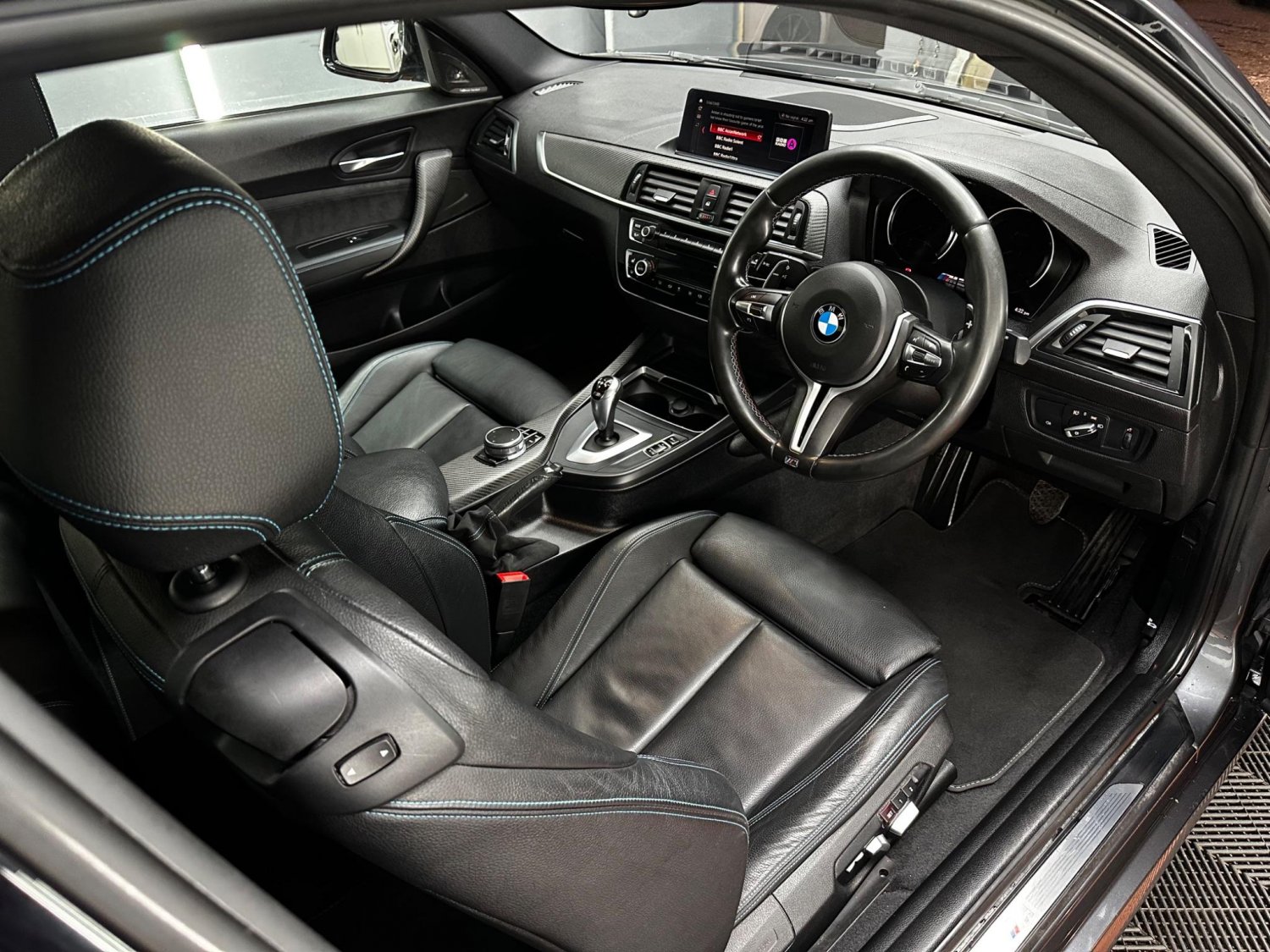 12V Power Socket - Centre Console, 12V Power Socket - Passenger Footwell, 19in Alloy Wheels - M Double Spoke Style - 437M with Mixed Tyres - Jet Black Forged and Burnished, Active M Differential, Air Conditioning - Automatic with Two-Zone Control, Airbags, Airblades - Ferric Grey, Alarm System - Thatcham 1 with Remote Control and Engine Immobiliser, Ambient Lighting - Switchable, Armrest - Front with Sliding Adjustment, Automatically Dimming Rear View Mirror, BMW ConnectedDrive Online Services, BMW ConnectedDrive Services, BMW Emergency Call, BMW Mobility System, BMW Professional Radio with Single CD Player - with MP3 Playback Compatibility, BMW TeleServices, Battery Age Recognition Function, Battery Safety Cut Off, Bluetooth Hands-Free Facility with USB Audio Interface and Audio Streaming, Brake Pad Wear Indicator, Bumper System - Front and Rear, Central Locking Switch - Doors - Fuel Filler Cap - Luggage Compartment, Check Control Warning System for Monitoring of Lights and Door-Luggage Compartment Open Warning, Child Seat ISOFIX Attachment for the Two Outer Rear Seats, Coat Hooks - Integrated into Rear of B Pillar, Condition Based Service, Crash Sensor, Cruise Control with Brake Function, Cup Holders x2 with Sliding Cover and Inlay Mat, DAB Digital Radio, DSC - Dynamic Stability Control Plus, Daytime Driving Lights, Direction Indicator - Side Repeaters - Integrated in Exterior Mirrors, Direction Indicator Lights - Clear Lenses, Door Sill Finishers - M2 Designation, Drive Performance Control - ECO PRO - Comfort - Sport - Sport Plus, Dynamic Brake Lights, ECO PRO Mode, EPS - Electric Power Steering, Electric Windows - Front and Rear with Open-Close Fingertip Control - Anti-Trap Facility and Comfort Closing Function, Engine Cover with BMW Roundel and TwinPower Turbo Designation, Exhaust Tailpipe - Twin Dual - Chrome, Extended Lighting, Extended Storage, Exterior Mirrors Electrically Adjustable, Exterior Parts in Body Colour, Exterior Trim - High-Gloss Shadowline, First Aid Kit and Warning Triangle, Floor Mats - Velour, Full Black Panel Display, Gearshift Lever with M Designation - Short-Shift, Glove Box, Handbrake Lever and Gear Lever in Leather, Head Restraints - Rear and Folding, Headlining - Anthracite, Heat Protection Glazing with Green Tint, High Level Third Brake Light, Instrument Cluster, Interior Comfort Package, Interior Lighting - Front Centre Over Interior Mirror and Rear Centre, Interior Trim - Carbon Fibre with Black High Gloss Finishers, Kidney Grille - Chrome with Double Black Vertical Slats - M2 Badging, LED Headlights, LED Rear Light Bars, Lashing Eyes in Luggage Compartment at Sill x2, Lights-On Warning by Audio Warning Signal When Ignition is Switched Off, Locking Wheel Bolts, Luggage Compartment - Light, Luggage Compartment Access via BMW Roundel, M DCT Gearbox, M Dynamic Mode, M Rear Spoiler, M Side Strakes, M Specific Braking System, M Specific Sport Suspension - Unique to M2, M2 Specific Aerodynamic Bodystyling with Unique Front Bumper-Rear Bumper and Side Skirts, Media Package - BMW Professional, Model Designation, Multifunction Controls for Steering Wheel, OBC - On-Board Computer, Oil Sensor For Level and Grade - Warning by Check Control System, Oil Temperature Display via On-Board Computer Shown in Central Screen in Instrument Cluster, Optimum Shift Indicator, PDC - Park Distance Control - Rear, Personal Profile - Extended, Rain Sensor with Automatic Headlight Activation, Real Time Traffic Information, Rear Fog Light, Rear Seat Headrests - Outer Headrests Folding, Rear Window Aerial, Remote Control with Integrated Key with Insert in Blue, Remote Services, Reversing Light in Rear Light Clusters, Seat Belt Security Check for Driver and Front Passenger, Seats - 60-40 Split Folding Rear, Shark Fin Aerial, Side Armrests - Front and Rear Integrated into Door Trim, Side Impact Protection, Sport Instrument Cluster - Differentiated Dial Design Featuring Finer Chrono-Scaling, Sport Seats - Front, Start-Stop Button with Comfort Go Keyless Engine Start and Auto Start-Stop Deactivation Button, Steering Wheel - M Leather Multi-Function Finished in Nappa Leather, Steering-Wheel Column Adjustment - Manual, Storage Compartment - Rear Centre Console and in Door Trim - Front, Sun Visors with Vanity Mirrors and Ticket Holder, TPMS - Tyre Pressure Monitoring System, Three-Point Seat Belts - All Seats, Twin Horns, Visible VIN, Welcome Lighting - LED
