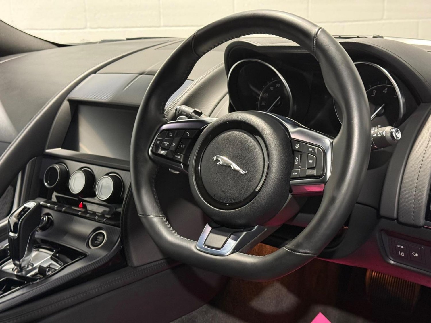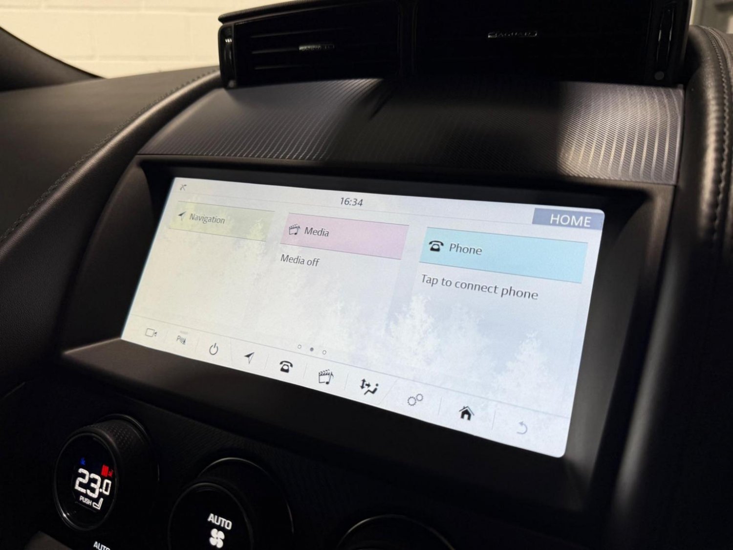 10.2in Touchscreen, 20in Alloy Wheels - 6 Split-Spoke Style 6003 with Dark Grey Diamond Turned Finish, 380mm Front and 325mm Rear Brakes, 5in Display with Instrument Panel - 190mph-300kmh, 6 Airbags, 6-Way Electric Front Seats, ABS - Anti-locking Braking System, Adaptive Dynamics, Analogue Dials with Central TFT Display - 190mph-300kmh, Auto-Dimming Interior Rear View Mirror, Autonomous Emergency Braking, Black Brake Calipers, Bluetooth Connectivity, Boot Entrapment Release Lever, Carpet Mats - Premium, Chrome Instrument Cluster Dial Rings, Cruise Control with Speed Limiter, Delta Aluminium Centre Console, Deployable Boot Lid Spoiler, Digital Audio Broadcast - DAB - Radio, Door Mirrors - Body Coloured, Door Trim - Luxtec, Driver Condition Monitor, Dynamic Mode, Dynamic Stability Control - DSC, EBA - Emergency Brake Assist, EBD - Electronic Brake-Force Distribution, EPB - Electric Parking Brake, Ebony Door Release, Ebony Morzine Headlining, Electric Windows - Front, F-TYPE Badge, Fixed Aluminium Roof, Flush Exterior Door Handles, Front Deployable Vents, Gloss Black Bonnet Louvres, Gloss Black Front Bumper Beam - Gloss Black Chin - Chrome Insert, Gloss Black Rear Valance and Venturi Blade, Graphite Interior Trim Accent, Graphite Vent Surrounds, Heated Door Mirrors, InControl Apps, Infrared Reflective Windscreen, Interior Lighting, Jaguar Tyre Repair System, LED Headlights with Signature Daytime Running Lights and Adaptive Front Lighting, LED Tail Lights, Lane Departure Warning, Lane Keep Assist, Leather Steering Wheel, Limited Slip Differential with Torque Vectoring by Braking, Low Line Cubby Box, Luxtec Wrapped Instrument Panel Topper, Meridian Sound System, Metal Treadplates with R-Dynamic Branding, Navigation Pro System, Not Heated Steering Wheel, Overhead Lighting Console, P380 Badge, Pedestrian Contact Sensing, Perimeter Sensing Alarm and Immobiliser, Pollen Filter, Power Assisted Steering, Pro Services, Protect, Push Button Start, R-Dynamic Badge, Rain Sensing Windscreen Wipers, Rain-Ice-Snow Mode, Rear Parking Aid, Remote Control Central Locking with Dead Locking and Drive-Away Locking, Remote Premium, Satin Black Grille with Chrome Surround, Satin Chrome Side Window Surrounds, Seats - Sports, Side Sills - Gloss Black, Silver Gearshift Paddles, Single Zone Automatic Climate Control, Standard Console, Steering Column - Electrically Adjustable, Sun Visors - Ebony Morzine, Switchable Active Sports Exhaust, Touch Pro System, Trip Computer, Twin Exhaust Pipes - Centre Mounted, Twin Front Cupholders, Tyre Pressure Monitoring System, USB and 12V Socket in Centre Console, Valet Mode