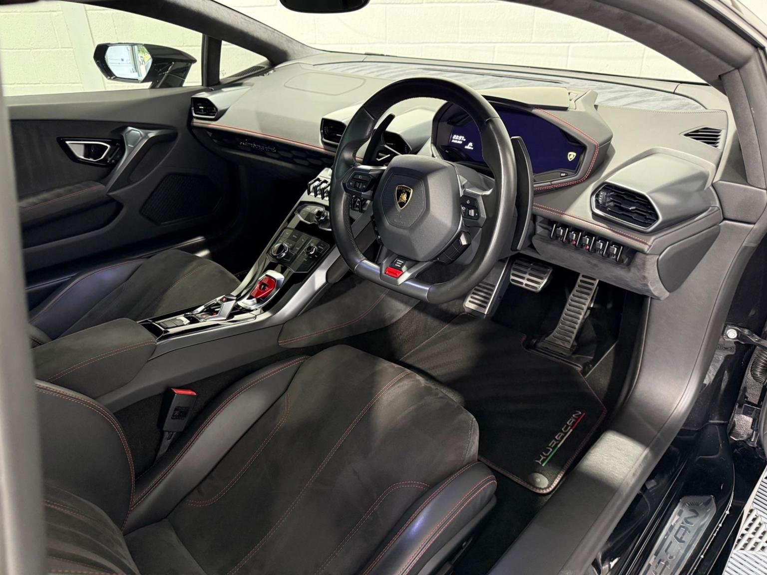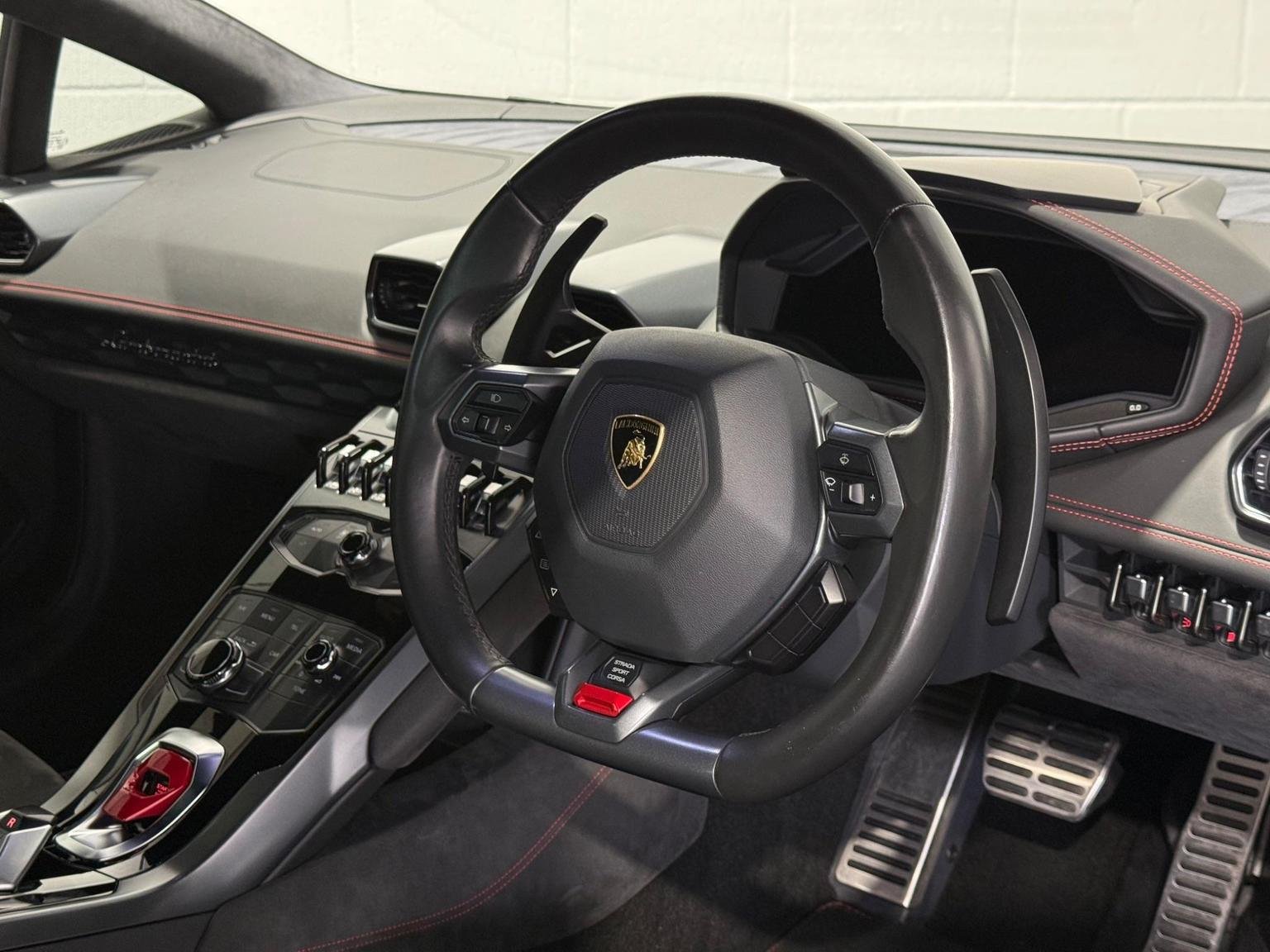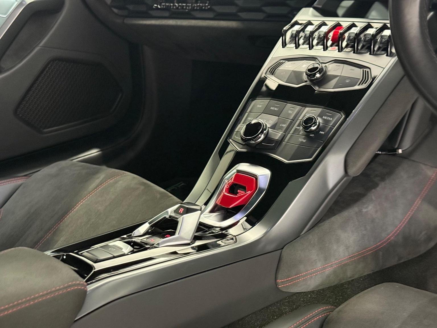 20in Alloy Wheels - Rims Giano Silver, 3-points Seat Belts with Pre-tensioner-Force Limiters and Height Adjustment, ABS - Anti-lock Braking System, ASR - Anti Slip Regulation, Active Carbon Filter, Airbag - Front Dual Stage Driver, Airbag - Front Dual Stage Passenger, Airbag - Head, Airbag - Thorax, Alcantara Multilayer on Upper Dashboard and Upper Central Door Panel, Autolock, Automatic Air Conditioning, Brake Calipers - Silver Painted, Carbon-ceramic Brake Discs - Internally Ventilated and Cross-drilled, Collapsible Steering Column, Dark Tinted Glass in Windows and Windscreen, Daytime Running Lights - LED, Deformation Zones at Front and Rear with Integral Aluminium Alloy Bumpers, Dimming Interior Lights - LED, Door Mirrors - Body Coloured, Door Mirrors - Electrically Adjustable-Heated and Folding, Door Storage Compartments, Double Wishbone Independent Suspension with Anti-Roll Bars on Front and Rear Axles, EBD - Electronic Brake Distribution, EPS - Electric Power-Assisted Steering with Variable Steering Ratio, ESC - Electronic Stability Control, Electronic Traction Control, Floor Mats with Nubuck Edge, Headlights - LED, Immobiliser, Instrument Cluster Integrated 12.3in TFT Colour Display, Interior Closed Glove Compartments in the Dashboard and Rear Centre Panel, Lamborghini Infotainment System, Lamborghini Warranty 4th Year, Launch Control Functions - Thrust Mode in CORSA and Race Start in SPORT, Leather Dashboard and Centre Parts of the Door Panels, Licence Plate Lights - LED, Radio - CD-DVD - MP3 Compatibility, Remote Central Locking, Rooflining in Technical Fabric, Seats - Electrically Adjustable Backrest, Seats - Height Adjustable Driver, Seats - Height Adjustable Passenger, Seats - Sports, Side Impact Bars in the Door Structure, Side Lights - LED, Speakers x4, Steering Wheel - Leather, Steering Wheel - Multifunction, Storage Compartment Under Front Centre Console, TPMS - Tyre Pressure Monitoring System, Tail Lights - LED, Tone on Tone Stitching, Trip Computer, Tyre Sealing Compound with Electric Air Compressor, USB and iPod-iPhone Connections, Vanity Mirrors in Sun Visors, Wheel Hub with Coloured Lamborghini Crest, Windows - Electric Front, Windscreen Washer System with 2 Wiper Speeds and Adjustable Intermittent Wiper