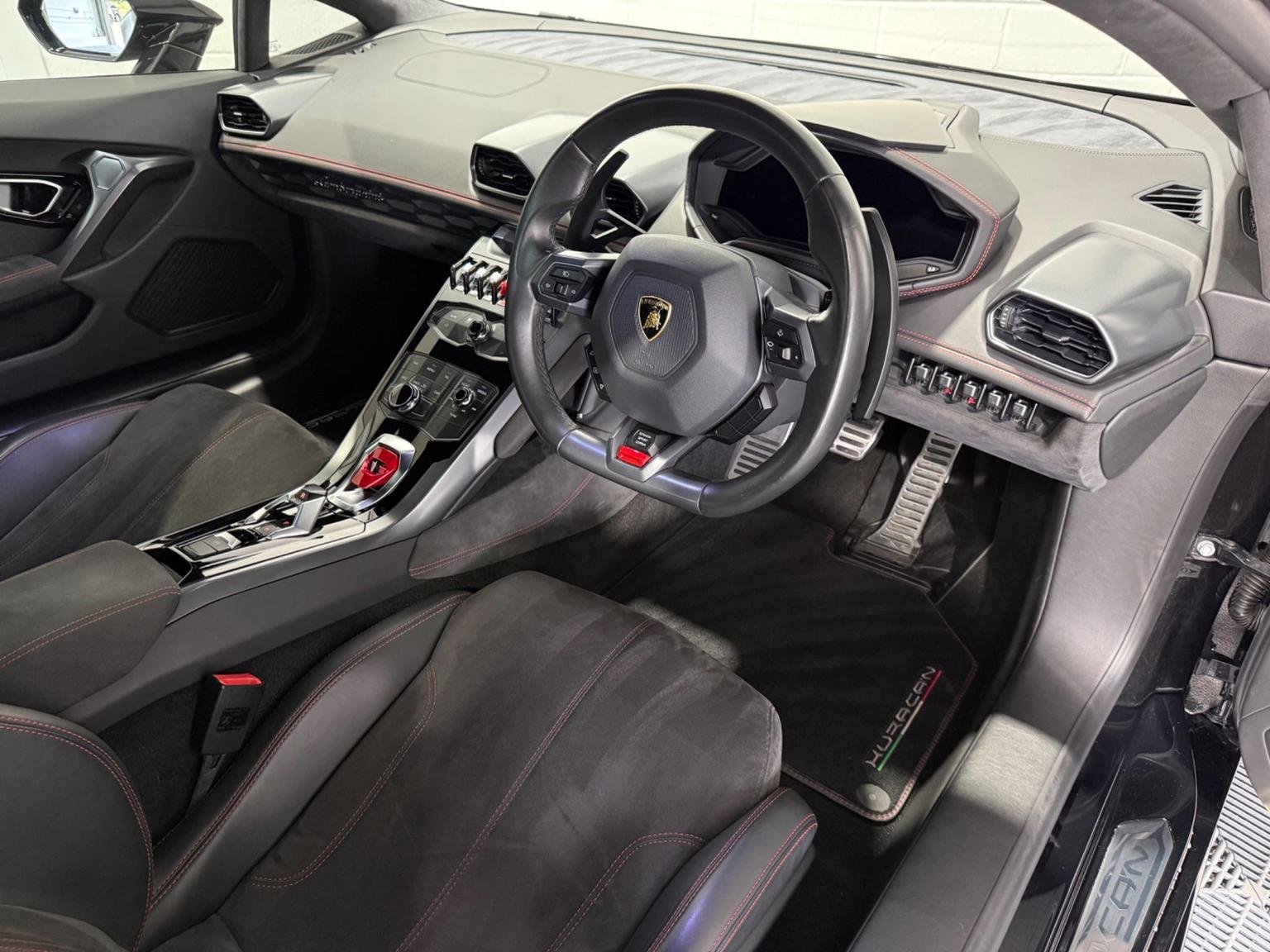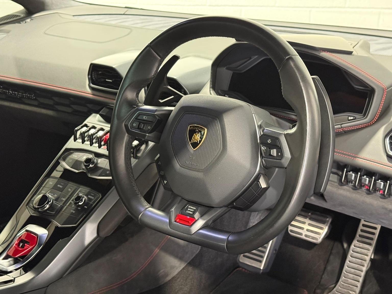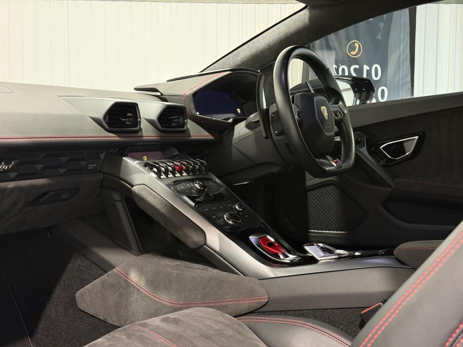 20in Alloy Wheels - Rims Giano Silver, 3-points Seat Belts with Pre-tensioner-Force Limiters and Height Adjustment, ABS - Anti-lock Braking System, ASR - Anti Slip Regulation, Active Carbon Filter, Airbag - Front Dual Stage Driver, Airbag - Front Dual Stage Passenger, Airbag - Head, Airbag - Thorax, Alcantara Multilayer on Upper Dashboard and Upper Central Door Panel, Autolock, Automatic Air Conditioning, Brake Calipers - Silver Painted, Carbon-ceramic Brake Discs - Internally Ventilated and Cross-drilled, Collapsible Steering Column, Dark Tinted Glass in Windows and Windscreen, Daytime Running Lights - LED, Deformation Zones at Front and Rear with Integral Aluminium Alloy Bumpers, Dimming Interior Lights - LED, Door Mirrors - Body Coloured, Door Mirrors - Electrically Adjustable-Heated and Folding, Door Storage Compartments, Double Wishbone Independent Suspension with Anti-Roll Bars on Front and Rear Axles, EBD - Electronic Brake Distribution, EPS - Electric Power-Assisted Steering with Variable Steering Ratio, ESC - Electronic Stability Control, Electronic Traction Control, Floor Mats with Nubuck Edge, Headlights - LED, Immobiliser, Instrument Cluster Integrated 12.3in TFT Colour Display, Interior Closed Glove Compartments in the Dashboard and Rear Centre Panel, Lamborghini Infotainment System, Lamborghini Warranty 4th Year, Launch Control Functions - Thrust Mode in CORSA and Race Start in SPORT, Leather Dashboard and Centre Parts of the Door Panels, Licence Plate Lights - LED, Radio - CD-DVD - MP3 Compatibility, Remote Central Locking, Rooflining in Technical Fabric, Seats - Electrically Adjustable Backrest, Seats - Height Adjustable Driver, Seats - Height Adjustable Passenger, Seats - Sports, Side Impact Bars in the Door Structure, Side Lights - LED, Speakers x4, Steering Wheel - Leather, Steering Wheel - Multifunction, Storage Compartment Under Front Centre Console, TPMS - Tyre Pressure Monitoring System, Tail Lights - LED, Tone on Tone Stitching, Trip Computer, Tyre Sealing Compound with Electric Air Compressor, USB and iPod-iPhone Connections, Vanity Mirrors in Sun Visors, Wheel Hub with Coloured Lamborghini Crest, Windows - Electric Front, Windscreen Washer System with 2 Wiper Speeds and Adjustable Intermittent Wiper